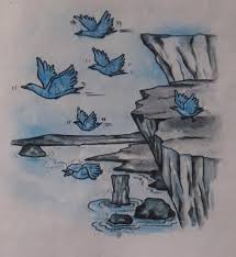 fell outwards and downwards into space. Then a monstrous terror seized him and his heart stood still. He could hear nothing. But it only lasted a minute. The next moment he felt his wings spread outwards. The wind rushed against his breast feathers, then under his stomach, and against his wings. He could feel the tips of his wings cutting through the air. He was not falling headlong now. He was soaring gradually downwards and outwards. He was no longer afraid. He just felt a bit dizzy. Then he flapped his wings once and he soared upwards. “Ga, ga, ga, Ga, ga, ga, Gaw-col-ah,” his mother swooped past him, her wings making a loud noise. He answered her with another scream. Then his father flew over him screaming. He saw his two brothers and his sister flying around him curveting and banking and soaring and diving. Then he completely forgot that he had not always been able to fly, and commended himself to dive and soar and curve, shrieking shrilly. He was near the sea now, flying straight over it, facing straight out over the ocean. He saw a vast green sea beneath him, with little ridges moving over it and he turned his beak sideways and cawed amusedly. His parents and his brothers and sister had landed on this green flooring ahead of him. They were beckoning to him, calling shrilly. He dropped his legs to stand on the green sea. His legs sank into it. He screamed with fright and attempted to rise again flapping his wings. But he was tired and weak with hunger and he could not rise, exhausted by the strange exercise. His feet sank into the green sea, and then his belly touched it and he sank no farther. He was floating on it, and around him, his family was screaming, praising him and their beaks were offering him scraps of dogfish. He had made his first flight.